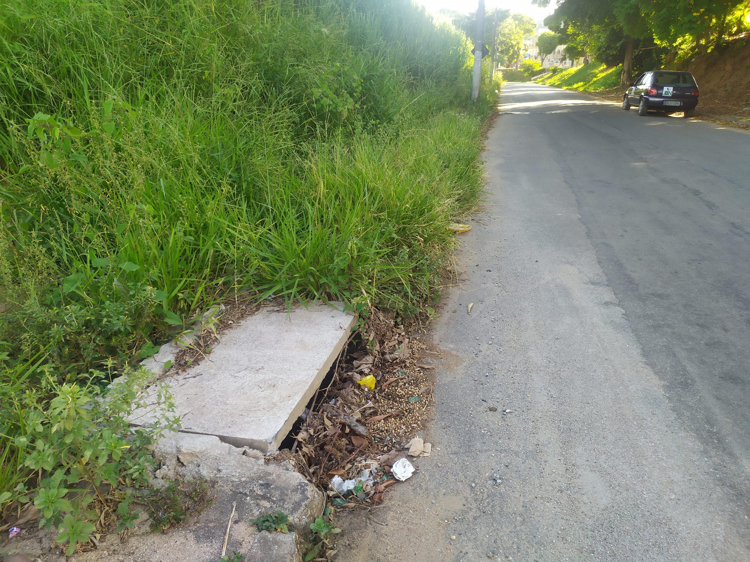 Na avenida Maria da Cunha Ramos, é fácil observar que o passeio desapareceu literalmente. Em todo o trecho o mato na calçada alcança mais de um metro de altura. Por conta da situação, o pedestre está forçado a caminhar na rua.