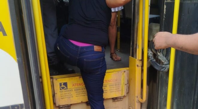 TIMÓTEO – Na manhã desta quarta-feira (18), foi registrada mais uma situação crítica no transporte público da cidade de Timóteo. Para que uma cadeirante pudesse desembarcar, foi necessária a ajuda de outros passageiros, já que o elevador do ônibus não funcionava.