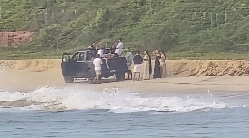 REDAÇÃO (Stúdio Porto – Web Rádio) – A caminhonete RAM 1500 Rebel flagrada circulando na beira da Praia da Pitinga,